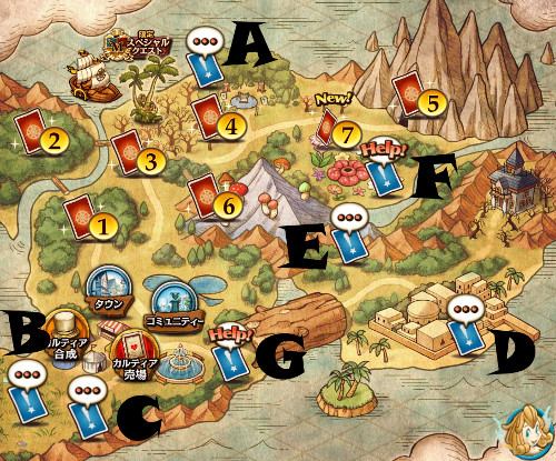 0016 | 助けを求める花 | ★★ | (7-7)カルポスの原でソルジャーアントを5対倒す | 名声2 | F |